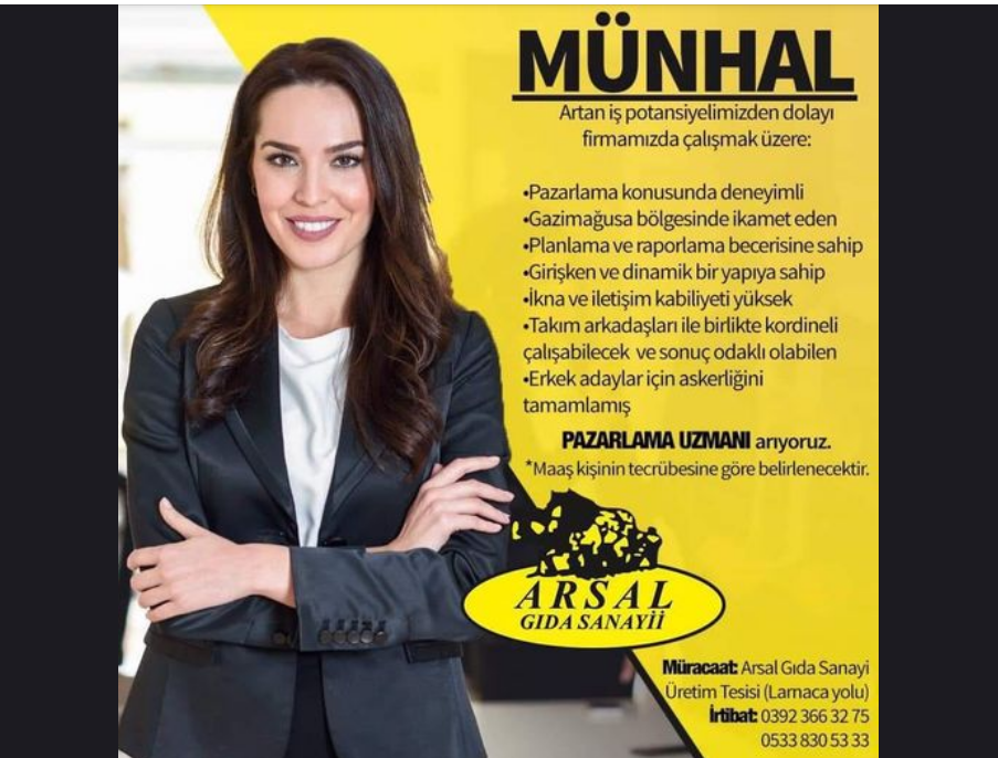 Kuzey Kıbrıs’ta iş arayan veya iş değiştirmek isteyenlerin münhal kaynağı Ekonomi Kıbrıs olarak yeni bir seçenek paylaşıyoruz.Kıbrıs'ta geleneksel ve yöresel ürünler kavramını geliştirerek üretim yapan KKTC'nin köklü firmalarından Arsal Gıda münhal açtı.-Pazarlama uzmanıBaşvuru: [email protected] - +90 533 830 53 33
