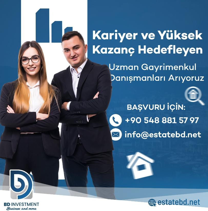 Kuzey Kıbrıs’ta iş arayan veya iş değiştirmek isteyenler için yeni bir fırsat.Yılların vermiş olduğu uluslararası tecrübelerini hizmet verdiği tüm sektörlerde uygulayarak hizmet verdiği sektörün lideri olma konusunda azimle çalışan bir kuruluş olma vizyonuyla KKTC'de hizmet veren BD Investment münhal açtı.-Gayrimenkul Danışmanı Telefon: +90 548 881 57 97Aranan Özellikler:• Güçlü hitap yeteneği• Güler yüzlü ve pozitif tutum• Yüksek ikna kabiliyeti• Yabancı dil bilgisi• Teknolojiyi etkin kullanabilme yeteneği• Erkek adaylar için askerlik görevini tamamlamış olmaSunduğumuz Fırsatlar:• Kendi maaşınızı belirleme özgürlüğü• Başarılı satışlardan prim kazanma imkanı• Gelişen ve dinamik bir şirkette çalışma ortamı• Kapsamlı eğitim ve gelişim programları• Başarılı bir ekiple çalışma imkanı