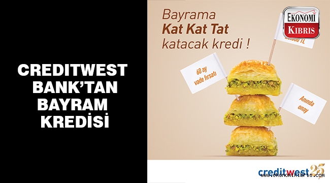 "Bayrama Kat Kat Tat Katacak Kredi" sloganıyla bayram kredisini duyuran creditwest bank müşterilerine yeni br kredi imkanı sunuyor. 60 ay vade fırsatı sunulan kredide anında onay garantisi de var. Detayı bilgi için ise Creditwest Bank şubelerine gitmeniz yeterli.