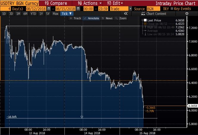 Güne hafif artıda 6.35'li seviyelerden başlayan Dolar/TL , öğleden önceki işlemlerde yönünü aşağı çevirdi ve yüzde 6'nın üzerinde düşerek 5.88'li seviyelere kadar indi.