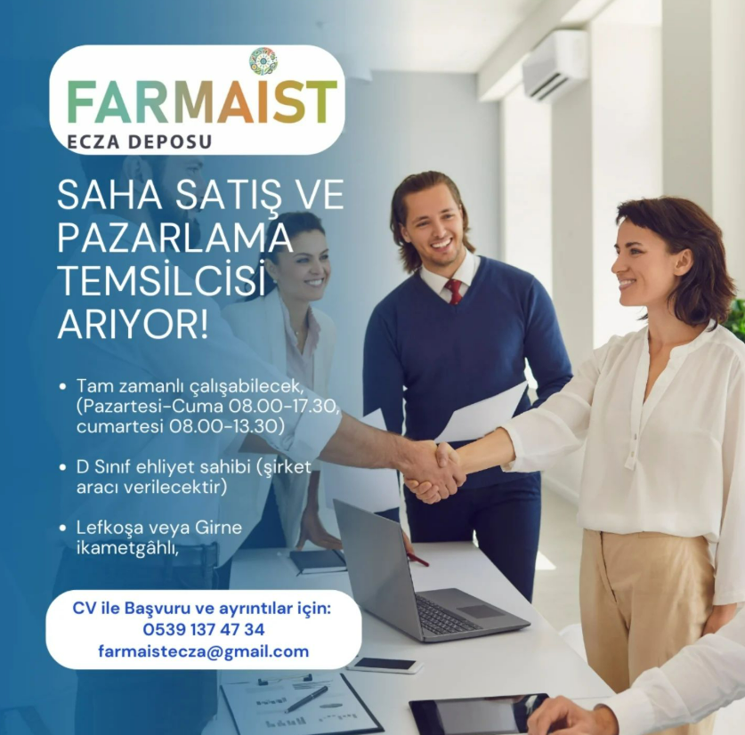 Kuzey Kıbrıs’ta iş arayan veya iş değiştirmek isteyenlerin münhal kaynağı Ekonomi Kıbrıs olarak yeni bir seçenek paylaşıyoruz.Sektörde yarattığı güven duygusu ve müşteri odaklı çalışma anlayışına paralel olarak ilaç dağıtımı ile ilgili her türlü gelişmeyi ve yeniliği uygulayarak ve en iyi hizmeti sunarak KKTC’de hizmet veren Farmaist Ecza Deposu münhal açtı.-Saha satış ve pazarlama temsilcisi