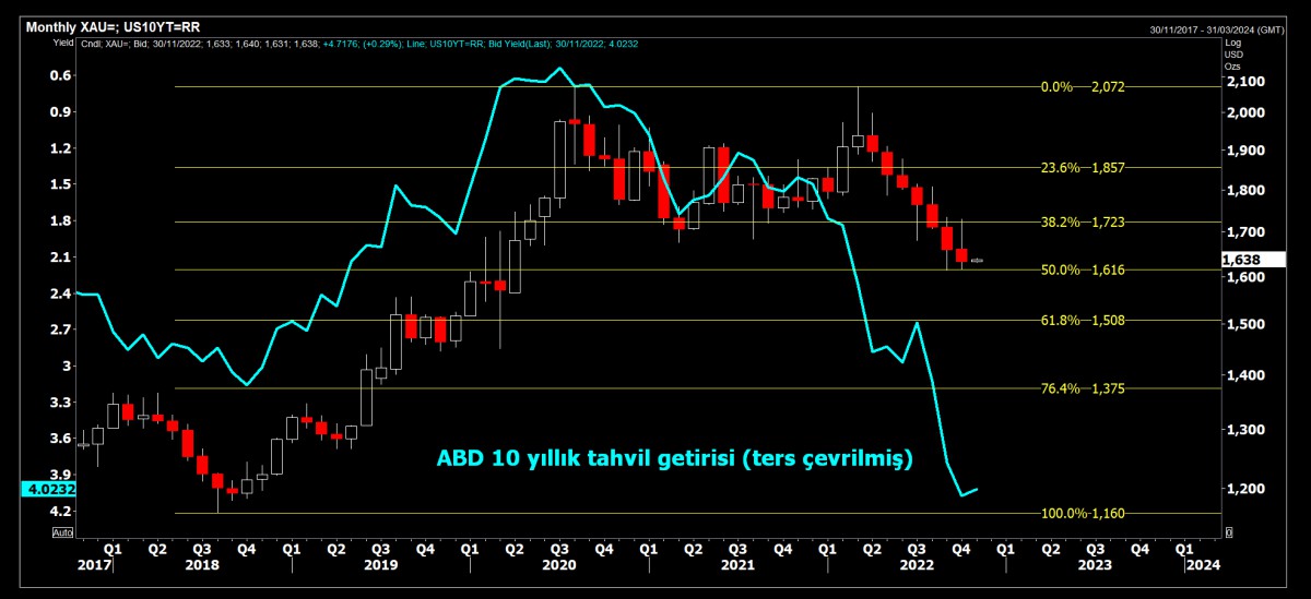 - FED'in fiyat istikrarının yanı sıra tam istihdam misyonu da beraber düşünülürse ve geçen hafta FED'in eski başkanı Yellen'in söyledikleri de dikkate alınırsa, FED'in ileriye dönük olarak çizeceği iyimser bir yol haritası (faizi artırımlarının erken sonlandırılması gibi) altında saman alevi tarzında parlamalara ilk etapta neden olabileceğini göz ardı etmiyoruz. Lâkin, 1,685 dolar seviyesinin üzerinde temiz bir aylık kapanış görmeden, 7 aydır kesintisiz bir şekilde devam eden aşağı yönlü seyrin de bittiğini iddia edemeyiz. Unutmamak gereken bir başka konu ise, 2023 yılında dünyayı bekleyen resesyon nedeniyle, baz metal ve kıymetli metallere olan 'talebin' de düşük seyredeceğini öngörüyoruz.