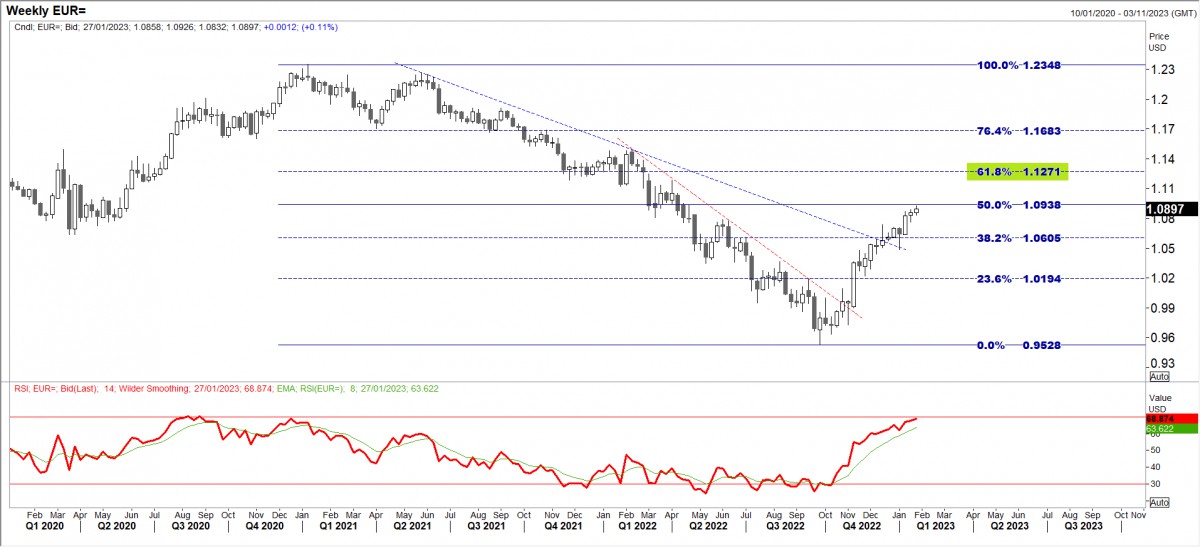 - Son günlerde bültenlerimizde Avrupa'ya yönelik görünümün ciddi mânâda iyileşme eğiliminde olduğuna yer veriyoruz. Ukrayna savaşı nedeniyle Putin'in Batı'nın yaptırımlarına karşısında gaz kartını çekerek Avrupa'yı dondurucu soğuklara teslim edeceği beklentisinin aksine, ılıman seyreden hava şartları ve iyi doldurulmuş gaz depolama tesislerine paralel Avrupa gaz fiyatlarının savaş öncesine (%80 düştü) seviyelere dönmesi, EUR'nun elini kuvvetlendirdi.