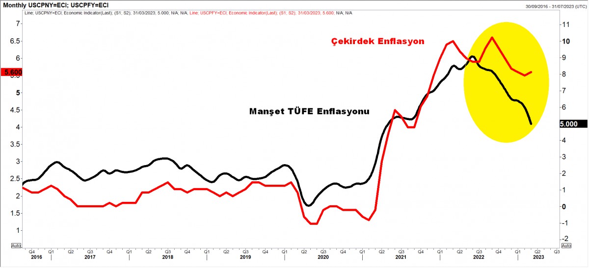 - Enflasyonun detaylarına indiğimizde ise, ABD tüketici fiyatlarının benzin maliyetinin düştüğü için Mart ayında zar zor yükseldiğini görülürken (aylık artış %0,1) inatla yüksek kiralar, altta yatan enflasyon baskılarını sürdüğünü ve FED'in 3 Mayıs tarihinde sonuçlanacak olağan toplantısında da 25 baz puan faiz artışına gideceğini gösterdi. Bu sabah itibariyle 25 baz puan faiz artışına piyasalar %72 ihtimal tanıyor.