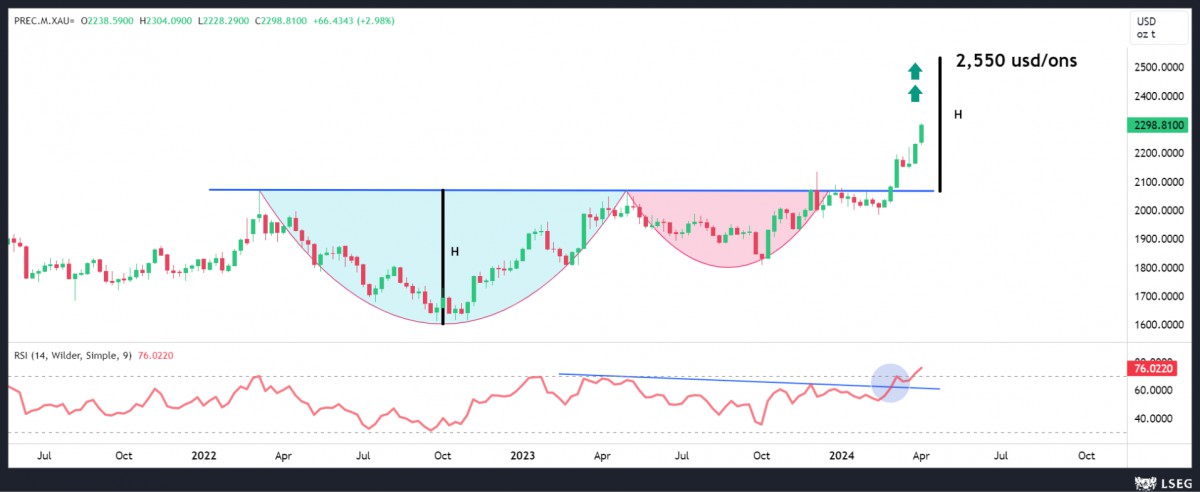 - Bu gelişmelerin ışığında ve Ortadoğu'da artan jeopolitik risklerin gölgesinde, ABD'de güçlü ekonomik verilerin enflasyon korkularını beslemesi kıymetli madenlerin de adeta parlamasına neden oluyor. Altının ons fiyatı bu sabah 2,300 dolar ile rekorunu bir adım daha yukarıya taşırken, son dönemlerde yaşanan iyimserlikte biraz geride kalan gümüşün de son 3 günde önemli bir eşik olarak gördüğümüz 26,20 dolar seviyesinin üzerine yükselerek %9 değer kazandığını görüyoruz! Altın cephesinde 2,550 dolar hedefi ile var olan uzun pozisyonlarımızın yanına, bir süredir dikkat çektiğimiz üzere, gümüşü de ekledik. İlk etapta tüm zamanların zirvesi olan 30 doları ve akabinde devamını bekliyoruz. Brent cinsi petrolün ise 90 dolarla ile 6 ayın zirvesine geldiğini not edelim.