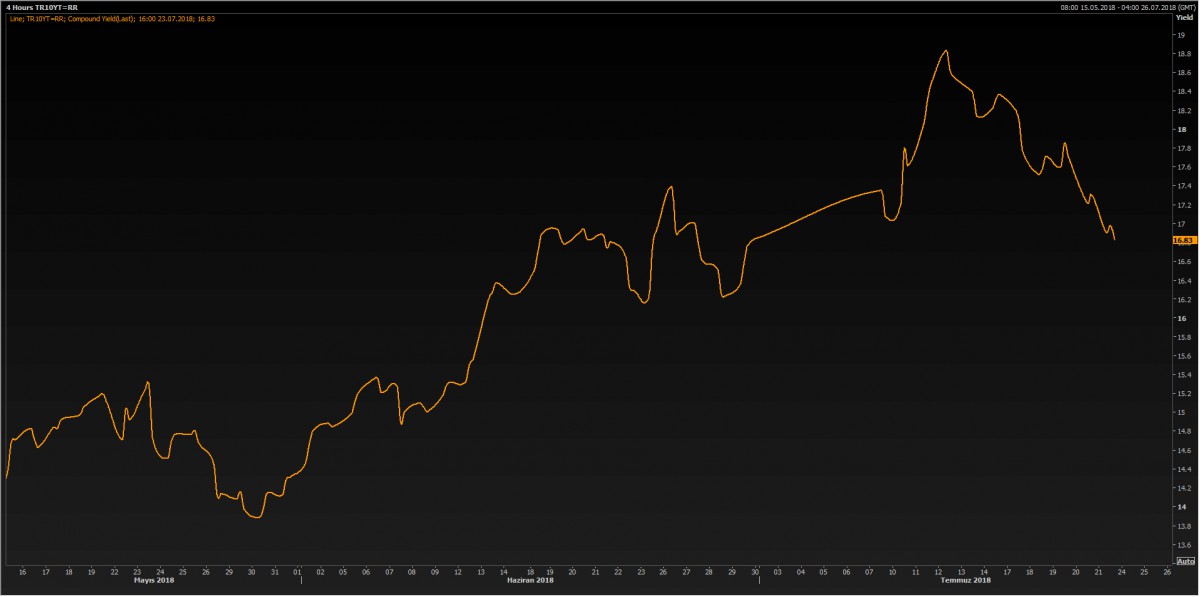10 yıllık tahvil tahvilin bileşik faizi uzun bir aranın ardından %17 seviyesinin altında geriledi.