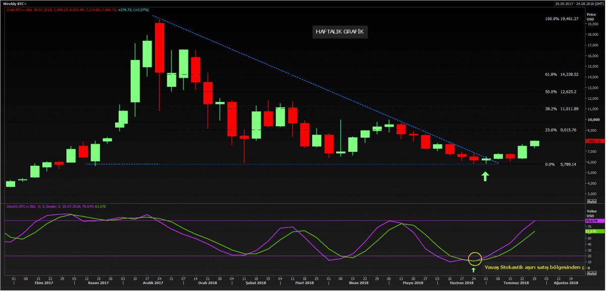 Bitcoin’de beklediğimiz yükseliş hareketi devam ediyor. Teknik olarak üçgeni yukarı yönlü kıran, devamında ise Ters Omuz Baş Omuz (TOBO) formasyonunu tamamlayan Bitcoin’de yükselişin devamını bekliyoruz.