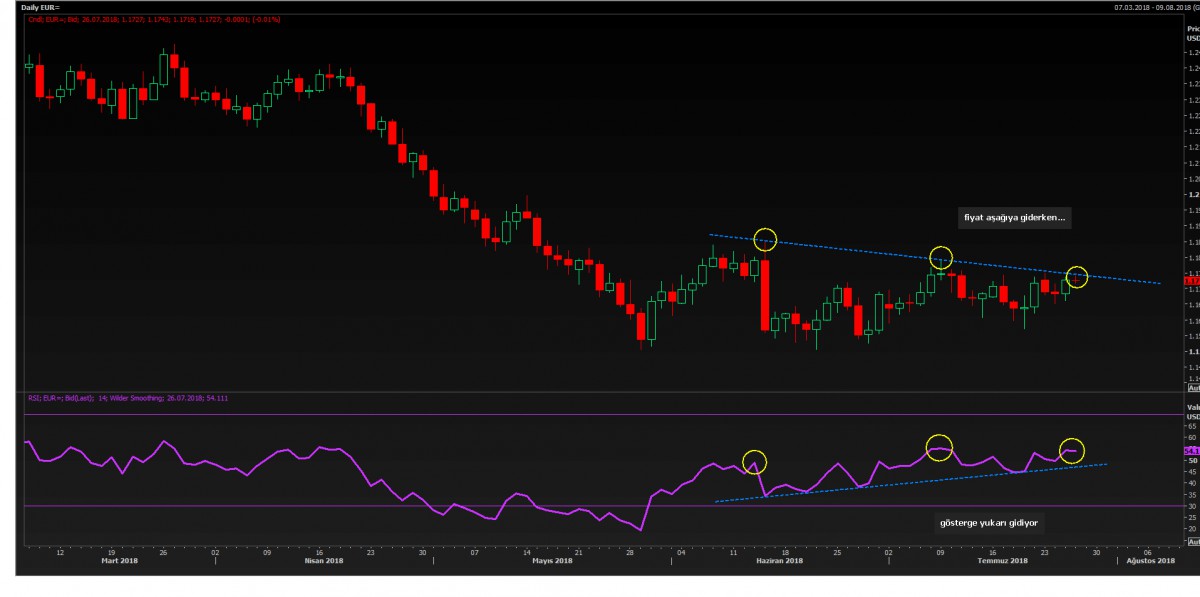 EUR/USD paritesinde 1.1750 üzerine atabilmesi durumunda, yukarda 1.1790 ve 1.1850 seviyelerini takip edeceğiz. Fiyat aşağıya giderken, güç göstergesinin ise (RSI) yukarı gittiğini görüyoruz. Bu tip uyuşmazlıklar önemle takip edilmelidir.