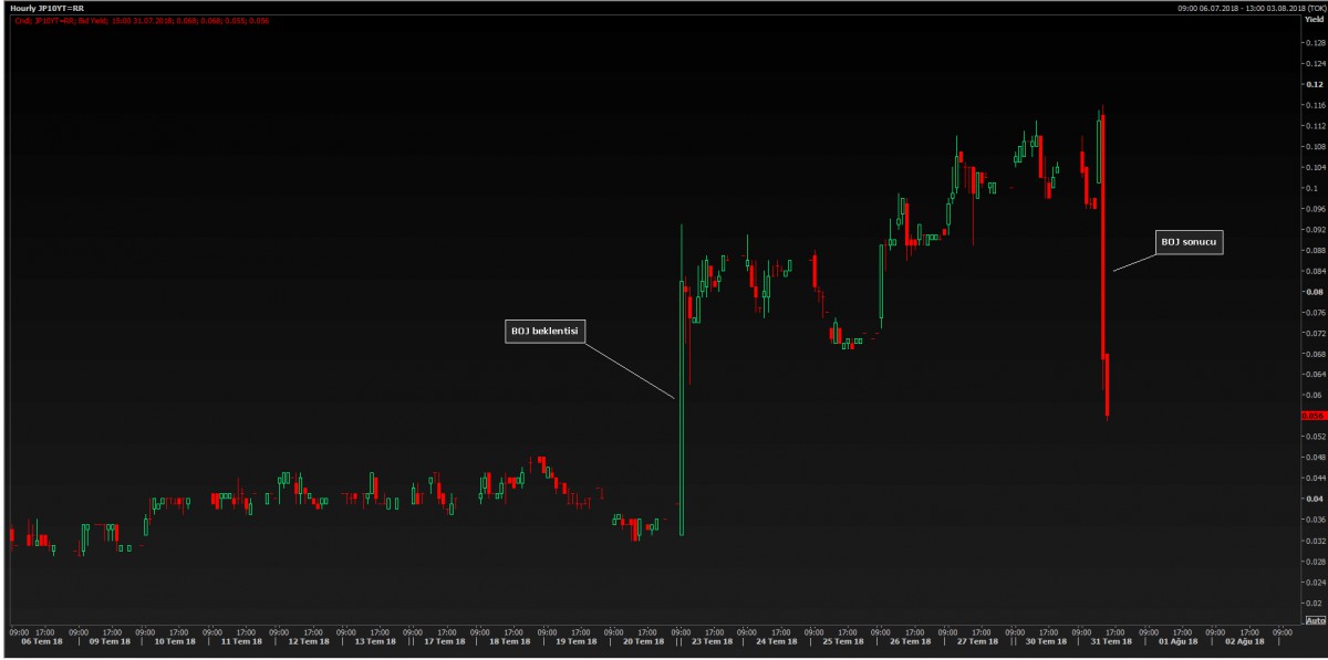*Öte yandan sabah saatlerinde merakla beklenen Japon MB kararı, piyasaları tedirgin edecek boyutta sonuçlanmadı. Karar ardından 10 yıllık Japonya tahvil faizleri %0.11 seviyesinden %0.055 seviyesine kadar geriledi (bakınız grafik).