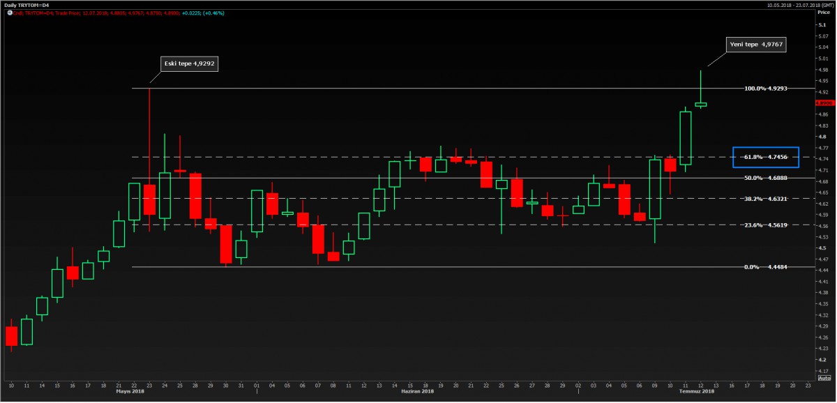 Dün bültenimizde özellikle USD/TRY kurunda 4,7450 seviyesinin öneminin altını çizmiştik. 4,9292 ile 4,4470 arasında hareketin önemli bir teknik seviyesi olan 4,7450’nin dün akşam üzerinde ilk kez gecelik kapanış yapılması ardından, USD/TL kuru, Asya piyasalarında adeta kısa bir zaman dilimi içerisinde eski rekor seviyesini egale ederek 4,9767 seviyesine varan ani bir yükseliş kaydetti. Bu gibi dengesiz piyasalarda sağlıklı yorumda bulunmak elbette oldukça güç. Temkinli ve tedbirli olmakta fayda görüyoruz.