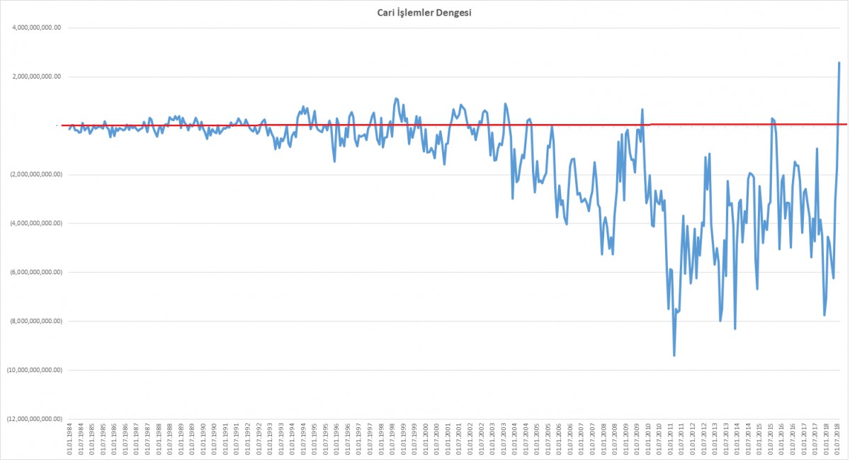 TCMB tarafından açıklanan cari işlemler dengesi, ağustos ayında piyasa beklentilerine paralel olarak 2.6 milyar dolar fazla verdi. Uzun aradan sonra cari işlemler dengesi aylık bazda ilk kez artıya geçmiş oldu. Bunun sonucunda 12 aylık cari işlemler açığı 51.1 milyar dolara geriledi. Bu rakamın mayıs ayında 58.3 milyar dolar olduğunu hatırlatmakta fayda var.