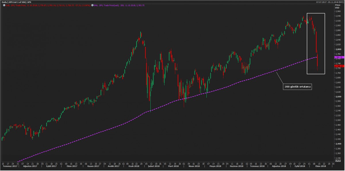 ABD gösterge borsası S&P 500 endeksi, 200 günlük ortalamasının7 altına sarktı. Dikkatle takip edilmeli!