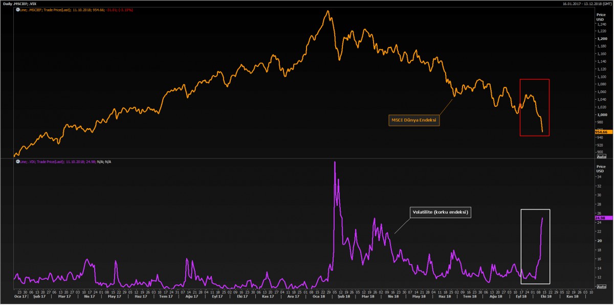 *Piyasaların korku endeksi olarak takip ettiği VIX endeksi 7 ayın zirvesine çıkarken, MSCI dünya endeksi ise 1 yılın dibine geriledi!