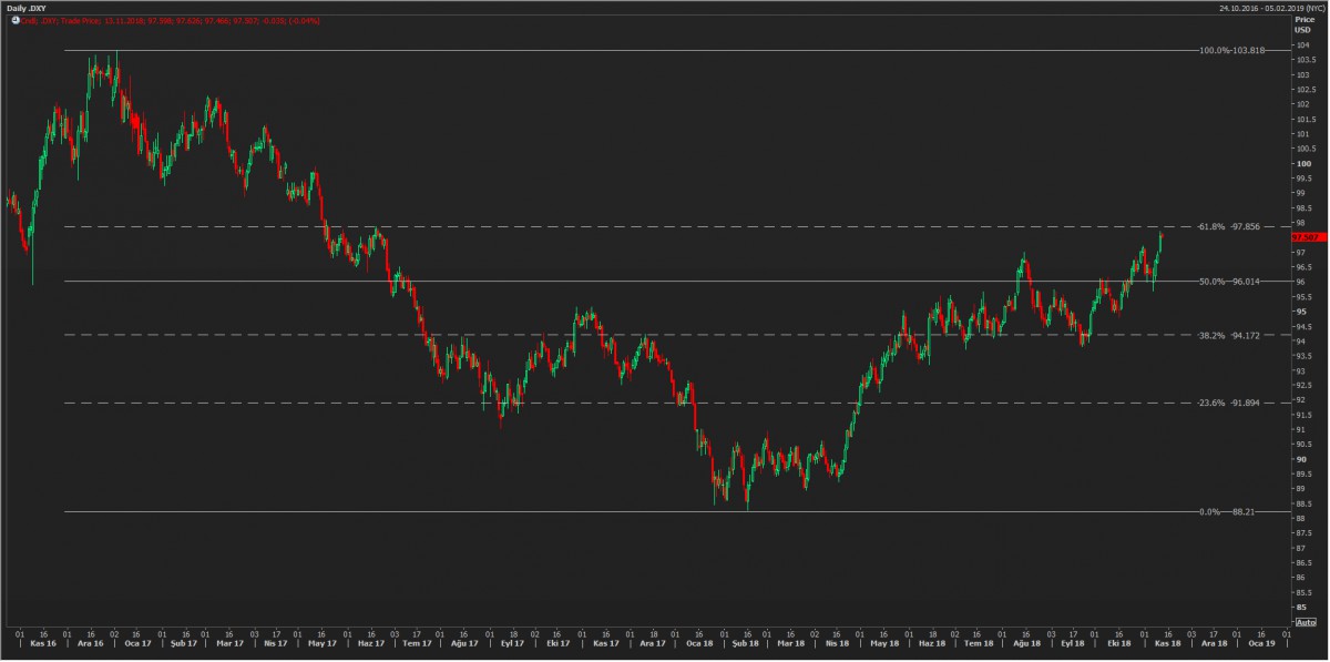 ABD Doları küresel manada değer kazandığını görüyoruz. Bunun arkasında birçok neden var. FED’in devam eden faiz artırımları, Avrupa’nın lokomotifi olan Almanya ekonomisinde daralma beklentisi, İngiltere’de Arap saçına dönen Brexit süreci ve yarattığı belirsizlik doların elini kuvvetlendirmeye başladı. Teknik bir bakış açısı ile, 98 seviyesi önemli bir seviye görevi üstleneceğini düşünüyoruz. Olası üzerine doğru istek, kuvvetlenme eğilimini daha da şiddetlendirebilir.