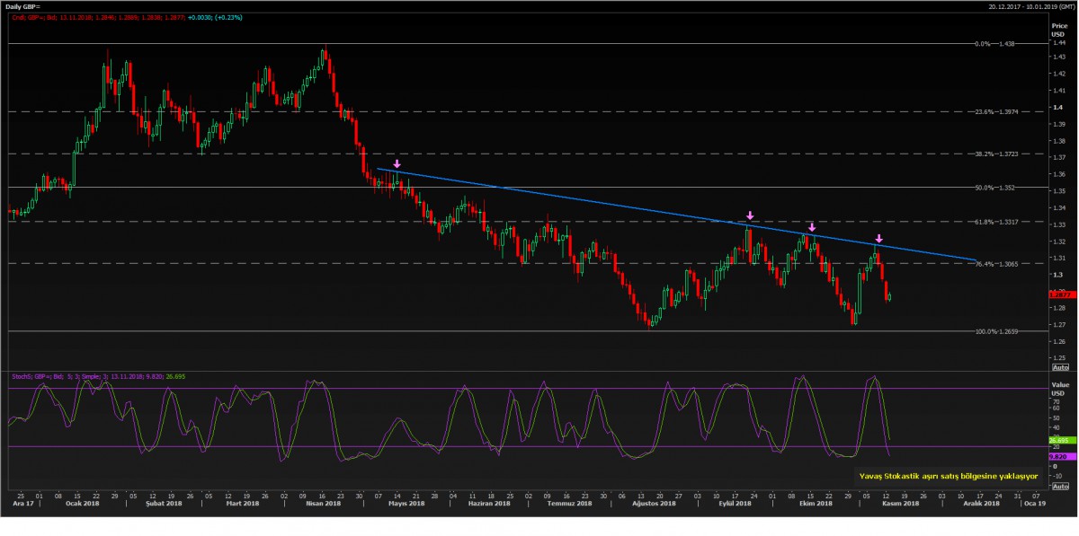 Avrupa’nın dördüncü büyük ekonomisi olan İtalya’nın bütçe sorunları ortak para birimi EUR üzerinde, Brexit’e dair Arap saçına dönen süreç ise “kraliçe” üzerinde baskı yaratmaya devam ediyor. Başbakan May’in Brexit planına yönelik gerek AB’den, gerekse de Birleşik Krallık içerisinden tepki gelmesi ve bakanlar düzeyinde May ile anlaşamayarak istifa etme isteğine yönelik haberler, GBP/USD paritesinde son 2 haftanın en düşük seviyesi olan 1.28’lerin test edilmesine neden oldu.