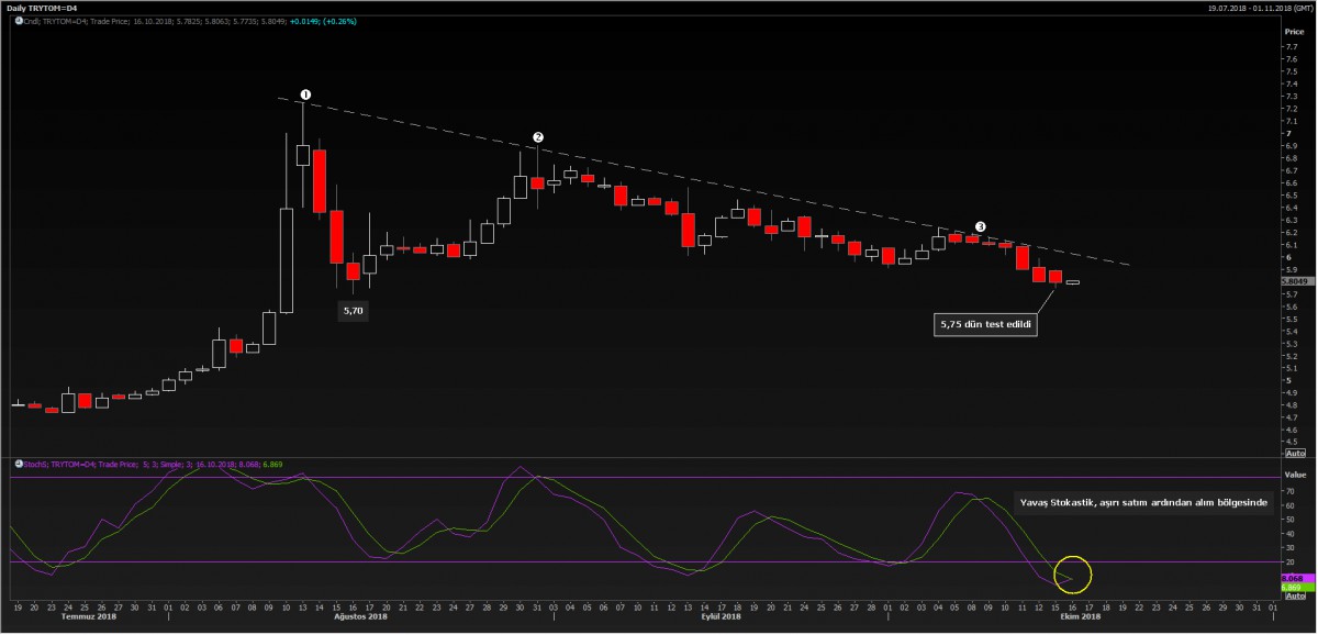 *USD/TRY kuru yaklaşık 1 ayı aşkın bir zamandır dile getirdiğimiz 5.70 seviyesine varan geri çekilme beklentimiz dün kurun 5.75 seviyesine kadar gerilemesi ile büyük ölçüde tamamlandı.