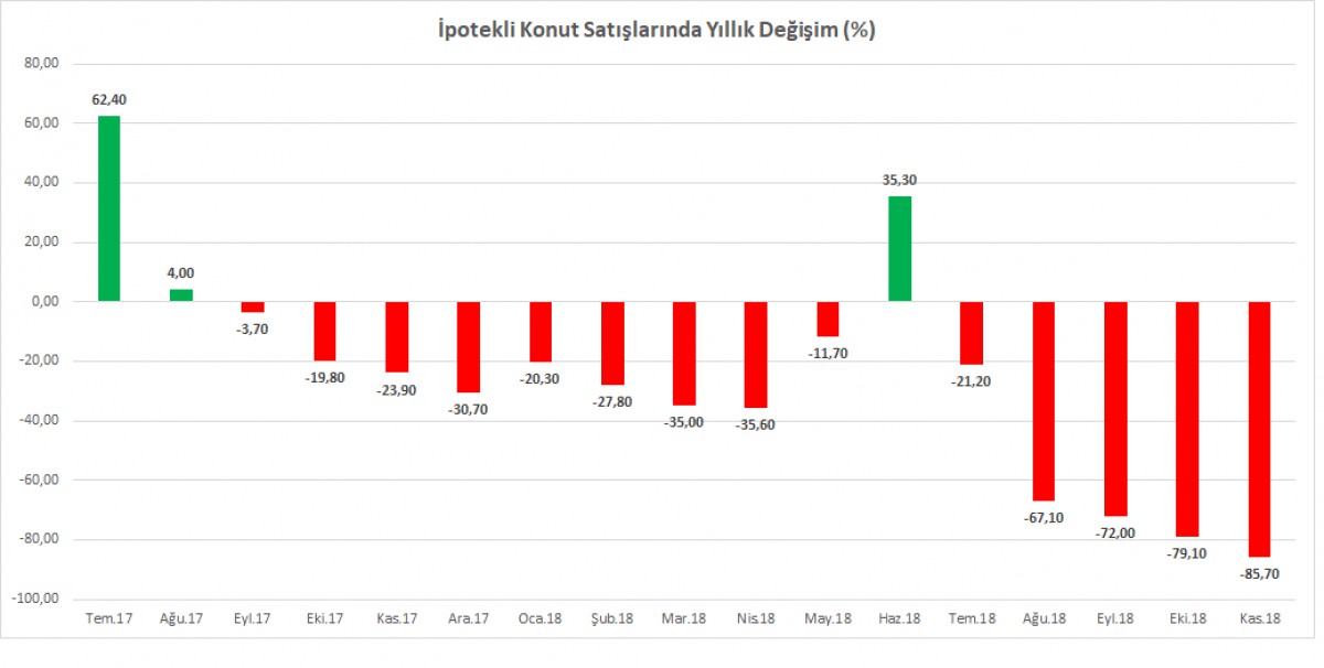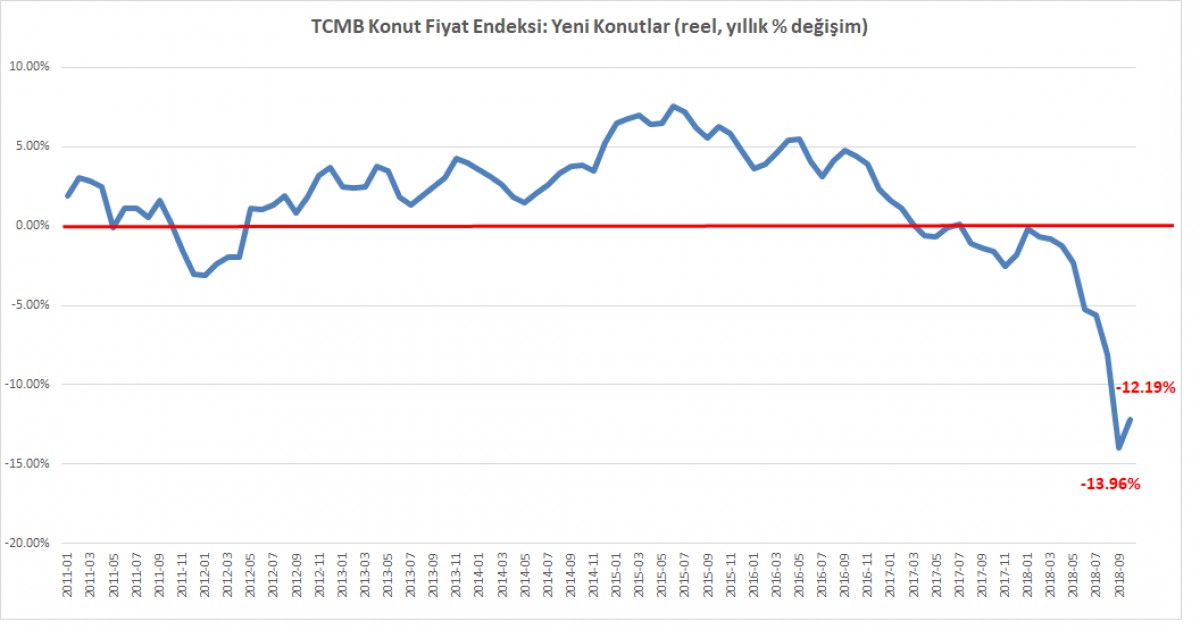 TÜİK'in açıkladığı konut satışları kasım ayında adeta çakıldı. İpotekli satışlar bir önceki yıla göre %85 geriledi. TCMB'nin açıkladığı hedonik konut fiyatları endeksi ise reel bazda %12 geriledi.