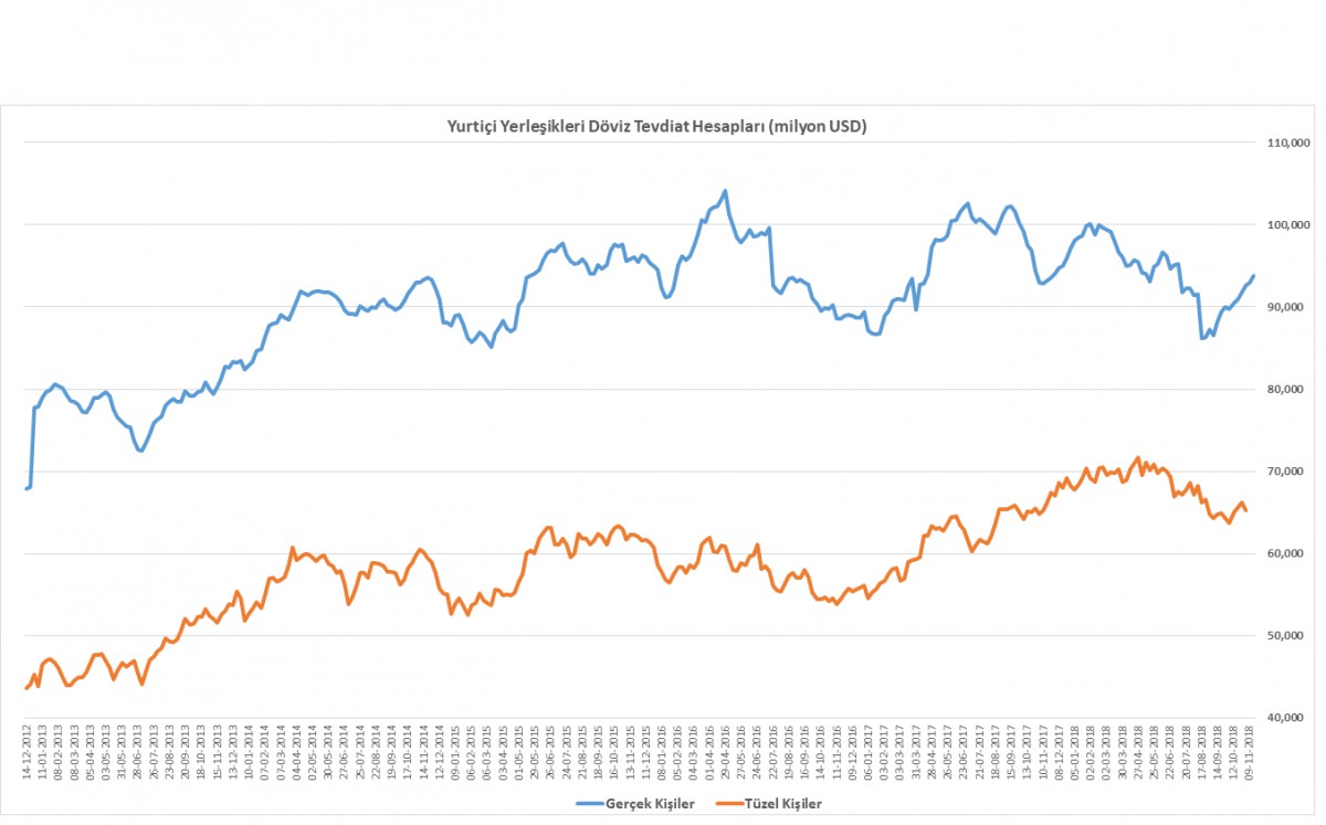 *Her hafta Perşembe günü açıklanan haftalık para ve banka istatistikleri önemli ip uçları veriyor. TCMB’nin toplam rezervleri, Eurobond ihracından gelen destek ile artarken, gerçek kişilerin döviz tevdiat hesaplarında yükselişin de devam ettiğini görüyoruz (bakınız grafik).