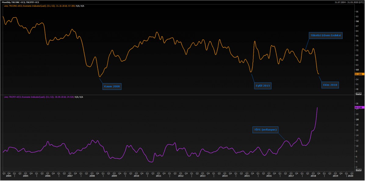 Türkiye İstatistik Kurumu ve Türkiye Cumhuriyet Merkez Bankası iş birliği ile yürütülen tüketici eğilim anketi sonuçlarından hesaplanan tüketici güven endeksi, ekim ayında bir önceki aya göre %3.4 azalarak 2008 Aralık ayından bu yana en düşük düzeyde gerçekleşti.