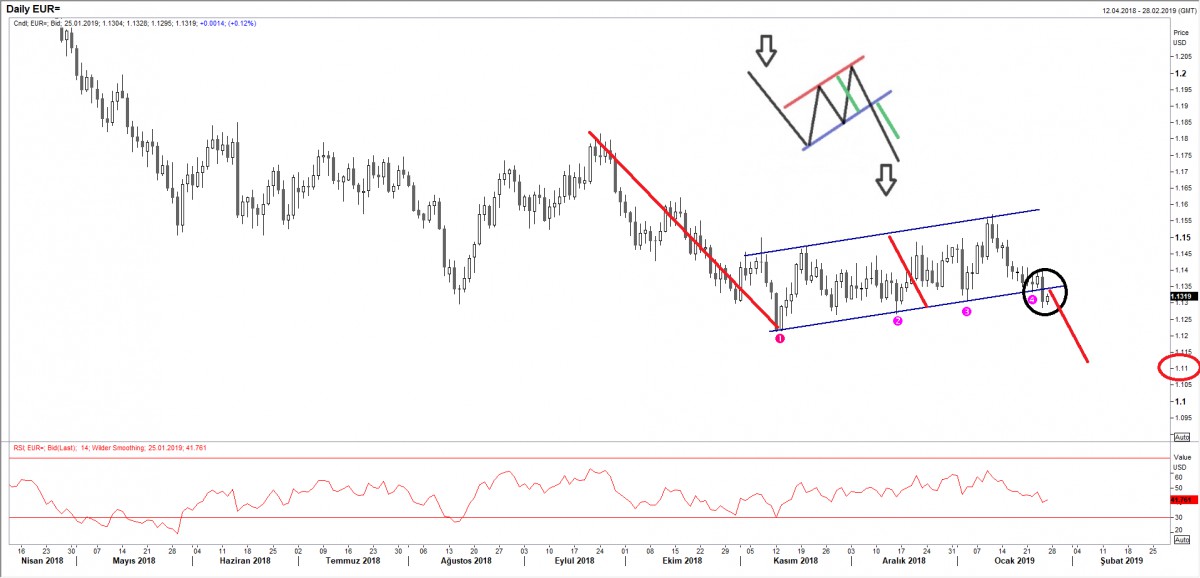 Dün sonuçlanan olağan Avrupa Merkez Bankası (ECB) faiz toplantısından beklenildiği üzere herhangi bir politika değişikliği gelmedi. Karar sonrasında basın karşısına geçen Başkan Draghi, ekonomik risklerin aşağı yönlü olduğuna işaret ederek güvercin bir tonda konuştu. Draghi’nin açıklamaları ardından yakın bir gelecekte pamuk ipliğine bağlı olan faiz artırım beklentisi ortadan kalkarken, mevcut duruşun yeniden değerlendirmek için bir süre beklenebileceğine de yer verildi. Draghi’nin konuşmasını piyasa oyuncuları tarafından beklenildiğinden de güvercin algılanarak, EUR/USD paritesinde dün ön plana çıkardığımız 1.1340 kısa pozisyonun da tetiklenmesine neden oldu. Akşam saatlerinde 1.1340 seviyesini aşağı yönlü geçen paritede kapanış 1.1305 seviyesinden gerçekleşirken, en düşük ise 1.1286 test edildi. Kısa vadede, düşüş eğiliminin korunması durumunda, sırası ile 1.1220 ve formasyon hedefi olan 1.11 seviyesinin test edilmesini bekliyoruz. Pozisyonun stop seviyesi (zarar kes) 1.1420