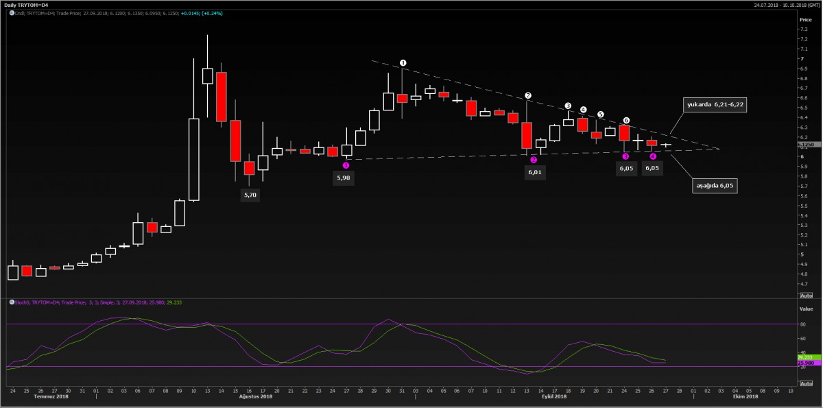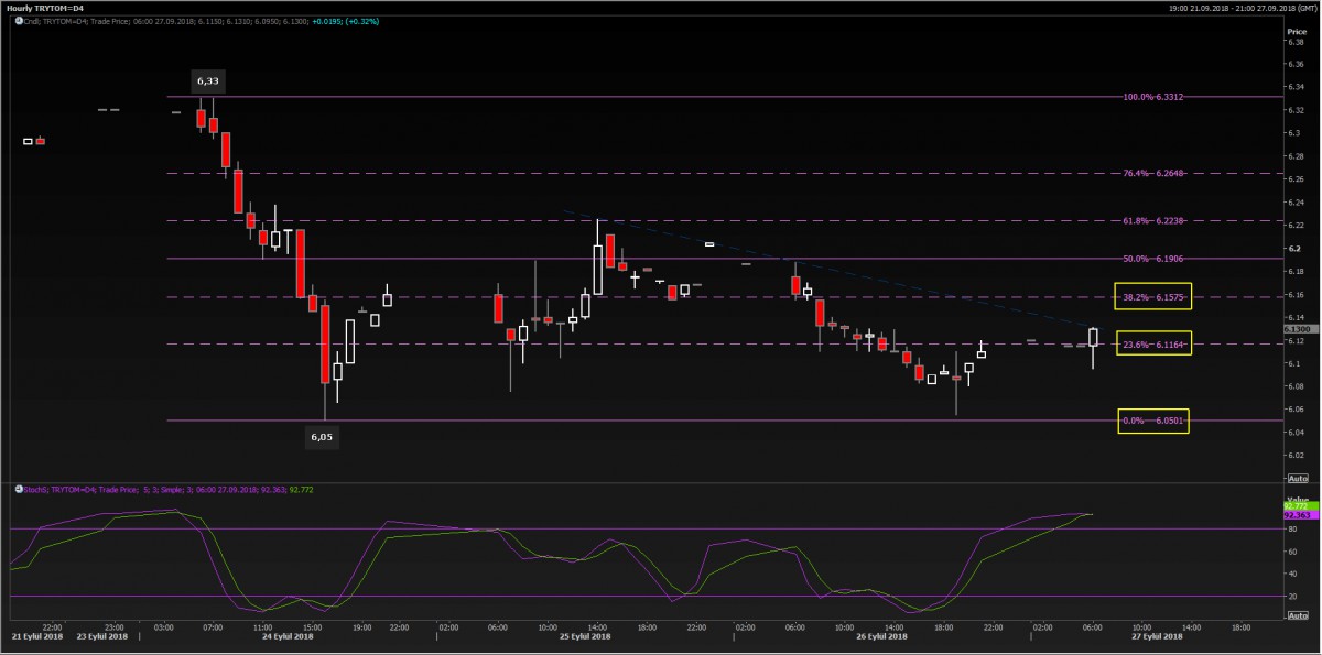 USD/TRY kuru, dün paylaşmış olduğumuz saatlik grafiklerdeki önemli teknik seviyeleri test etti. Gün boyu 6.11 seviyesini aşağı geçmekle uğraşan USD/TL kuru, FED toplantısının yatırımcıları ürkütmemesi ile gece geç saatlerde 6.05 seviyesini test etti. Sabah saatlerinde kurun yeniden 6.12 seviyelerine yükseldiğini görsek de, Rahip Brunson konusunun gündemi sıcak tutmaya devam edeceğini öngörüyoruz. Büyük resimde, TCMB’nin agresif faiz adımı, OVP/YEP’te 2019 yılına yönelik daha ılımlı büyüme tahminleri, ABD’de kapalı kapılar arkasında yapılan temaslar ve nihayetinde Rahip konusunun bir şekilde ilişkileri yeniden toparlayacak şekilde çözüleceği beklentisi ile psikolojik 6 seviyesinin önümüzdeki günlerde aşağı yönlü geçileceği ve ufukta 5.70 seviyesinin görüleceğini öngörüyoruz.
