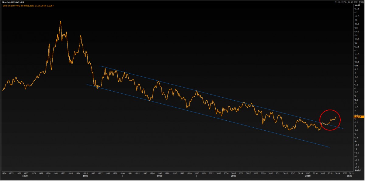 Dün açıklanan güçlü veriler, ABD tahvil faizlerinde yükselişi daha da tetikledi. ABD ekonomisinden gelen güçlü sinyaller, faiz artırımlarının devam edeceğini müjdelerken, ABD 10 yıllık tahvil faizi %3.20 seviyelerine gelerek 2011 yılına döndü. Risksiz faiz oranı olarak barometre görevi üstlenen ABD faizlerinde yaşanan bu yükseliş, özellikle dış finansman ihtiyacı içinde olan gelişmekte olan ülkeler açısından olumsuz bir haber.