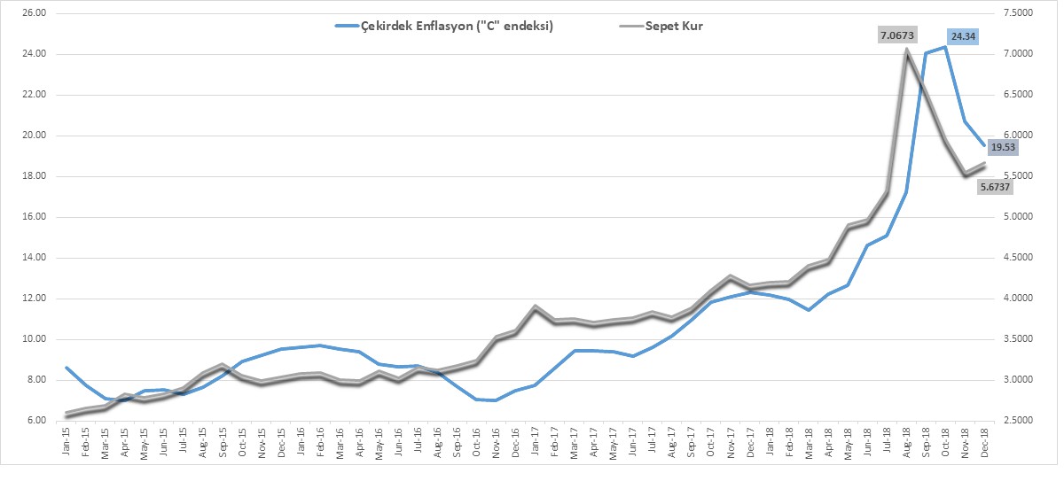 *TCMB’nin yakından izlediği özel tanımlı TÜFE göstergelerinden C tanımlı endeksler aralıkta %0.45 gerilerken, yıllık değişim ise %19.53 oldu.