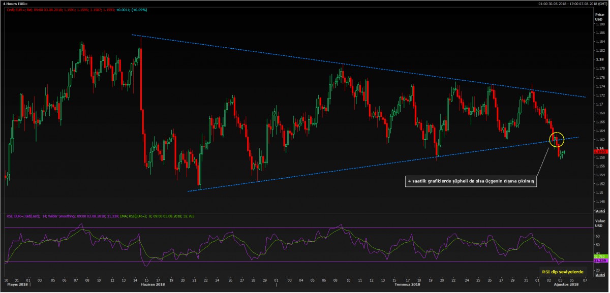 4 saatlik grafiklerde şüpheli de olsa üçgen kırılımını gerçekleştiren EUR/USD paritesinde bugün günün ikinci yarısında açıklanacak ABD istihdam raporu ardından daha fazla ip ucuna sahip olacağız.