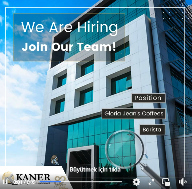 Kuzey Kıbrıs’ta iş arayan veya iş değiştirmek isteyenler için yeni bir fırsat.Kuzey Kıbrıs’ın yaptığı ithalatlarla her geçen gün gelişen firma ilişkileri sayesinde uluslararası ağını genişleten ve iş hacmini artırmaya devam eden önde gelen şirketlerinden Kaner Şirketler Grubu, bünyesinde istihdam etmek üzere takım arkadaşı arıyor. İskele ve Famagusta'daki Gloria Jean's Coffees mekanlarına 'Barista' olarak yeni takım arkadaşları aramaktadır.Aranılan Nitelikler- Tercihen sektörde deneyimli,-Esnek çalışma saatlerine uyum sağlayabilen,-Hem konuşulan hem de yazılı İngilizce'yi bilen,-Yüksek motive edici ve güçlü bir takım oyuncusu.Başvurular 26/08/2024 tarihine kadar açık olup www.kaner.net. adresindeki çevrimiçi başvuru formu ile yapılabilir. Bölüm Tercihi olarak 'Gloria Jean's Coffees'i, formda ise 'Barista'yı seçin.