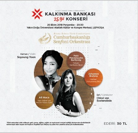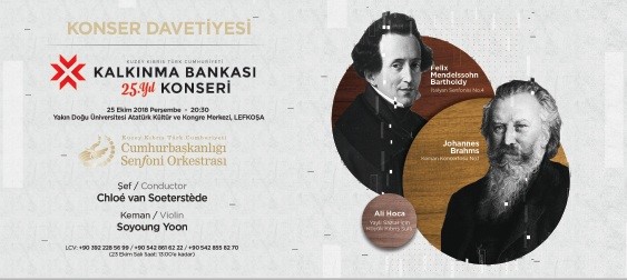 KKTC Kalkınma Bankası’nın açıklamasına göre, 25 Ekim Perşembe günü 20.30 - 22.00 saatleri arasında yapılacak konser Yakın Doğu Üniversitesi Atatürk Kültür Merkezi’nde gerçekleşecek.