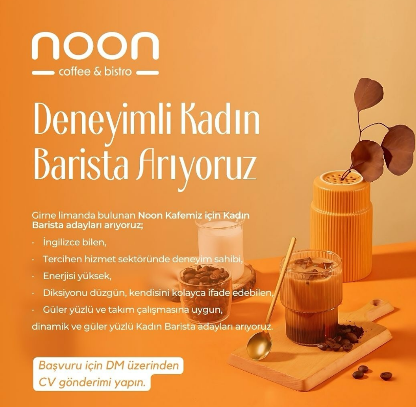 Kuzey Kıbrıs’ta iş arayan veya iş değiştirmek isteyenlerin münhal kaynağı Ekonomi Kıbrıs olarak yeni bir seçenek paylaşıyoruz.Kuzey Kıbrıs'ın kaliteli restorantlarından Noon Coffee & Bistro yeni takım arkadaşları aramaktadır.-Kadın BaristaAranılan Nitelikler